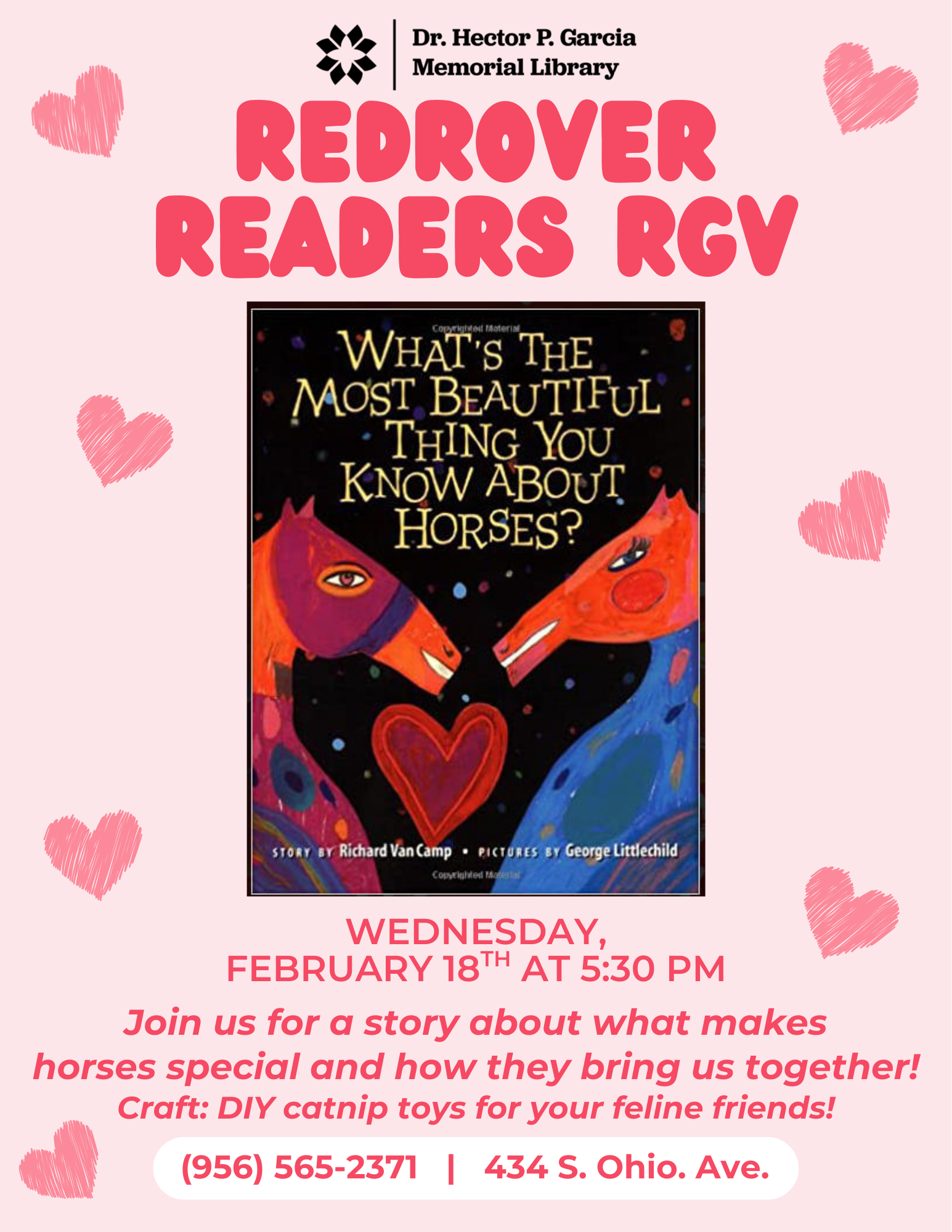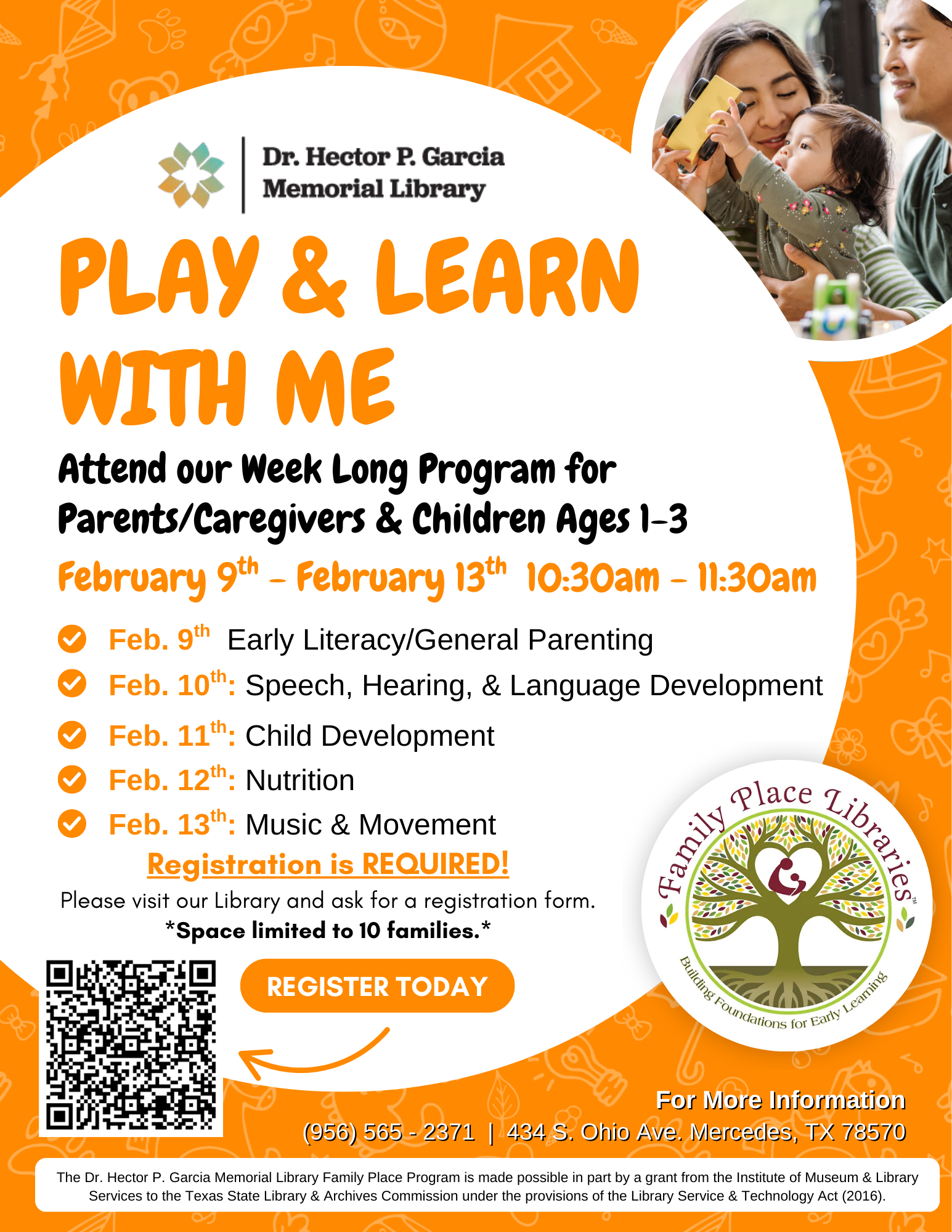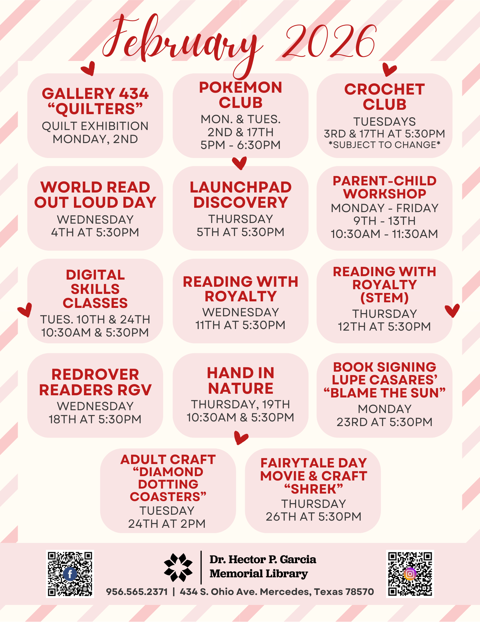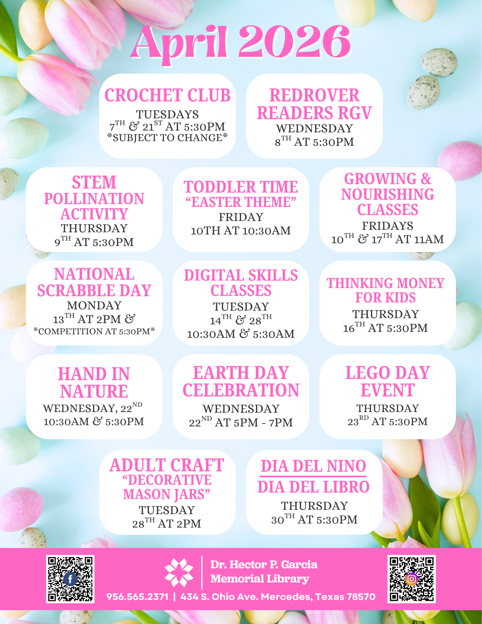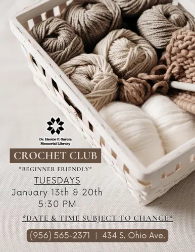 The Dr. Hector P. Garcia Memorial Library has various programs occurring throughout the year for children, teens, and adults. Below you can find a list of our regular programming, but make sure to check on the flyer for specific dates and times.