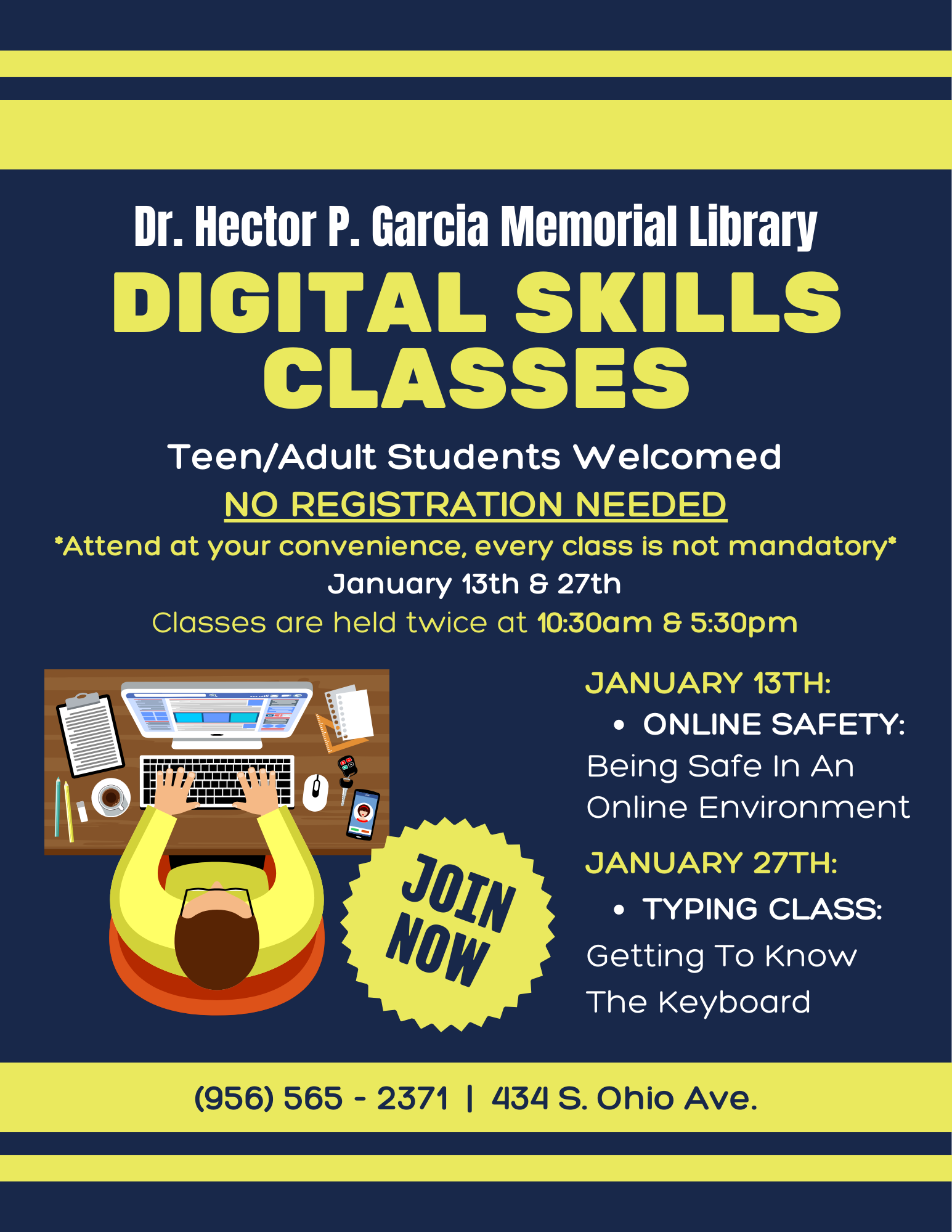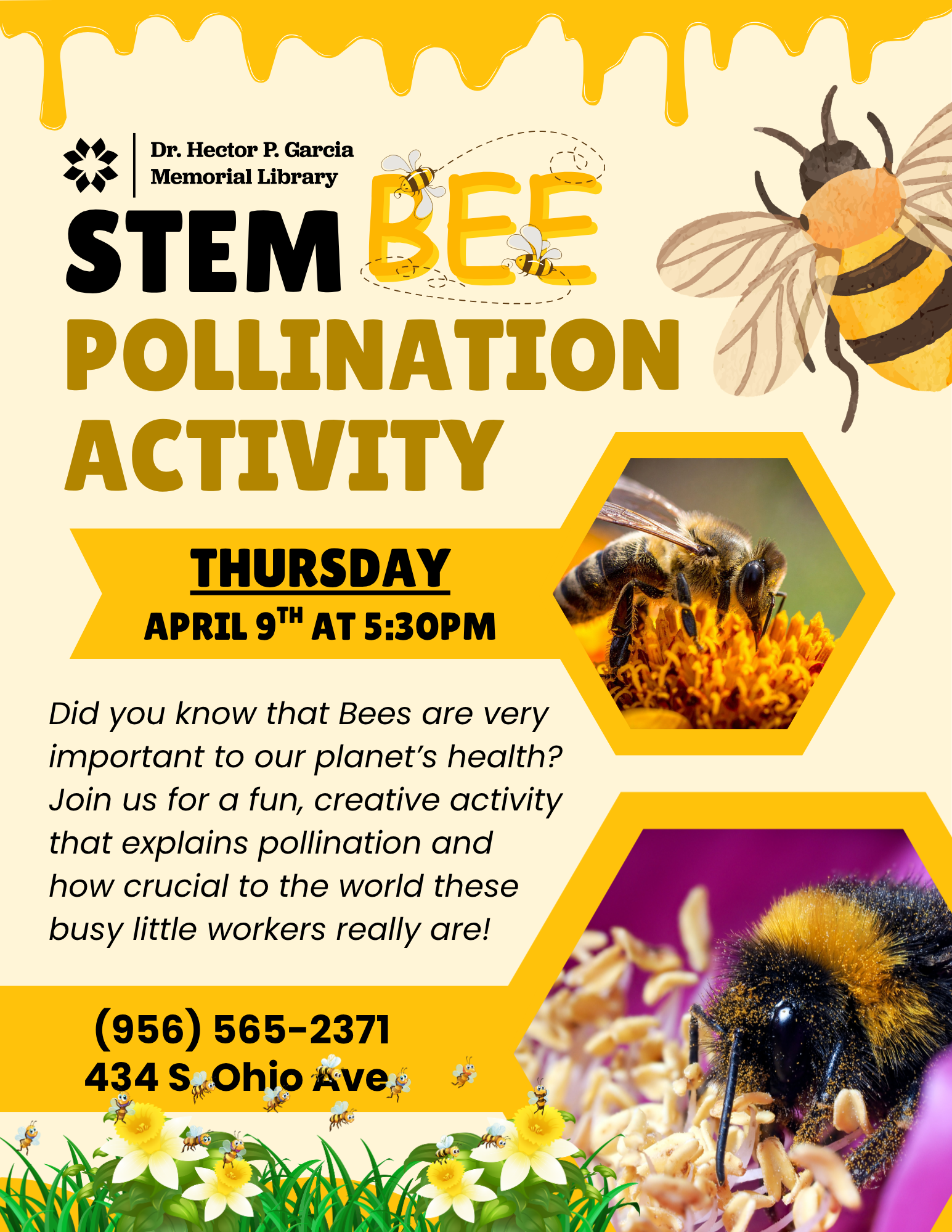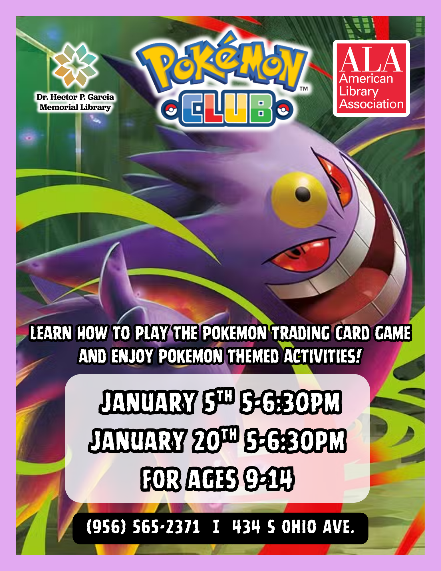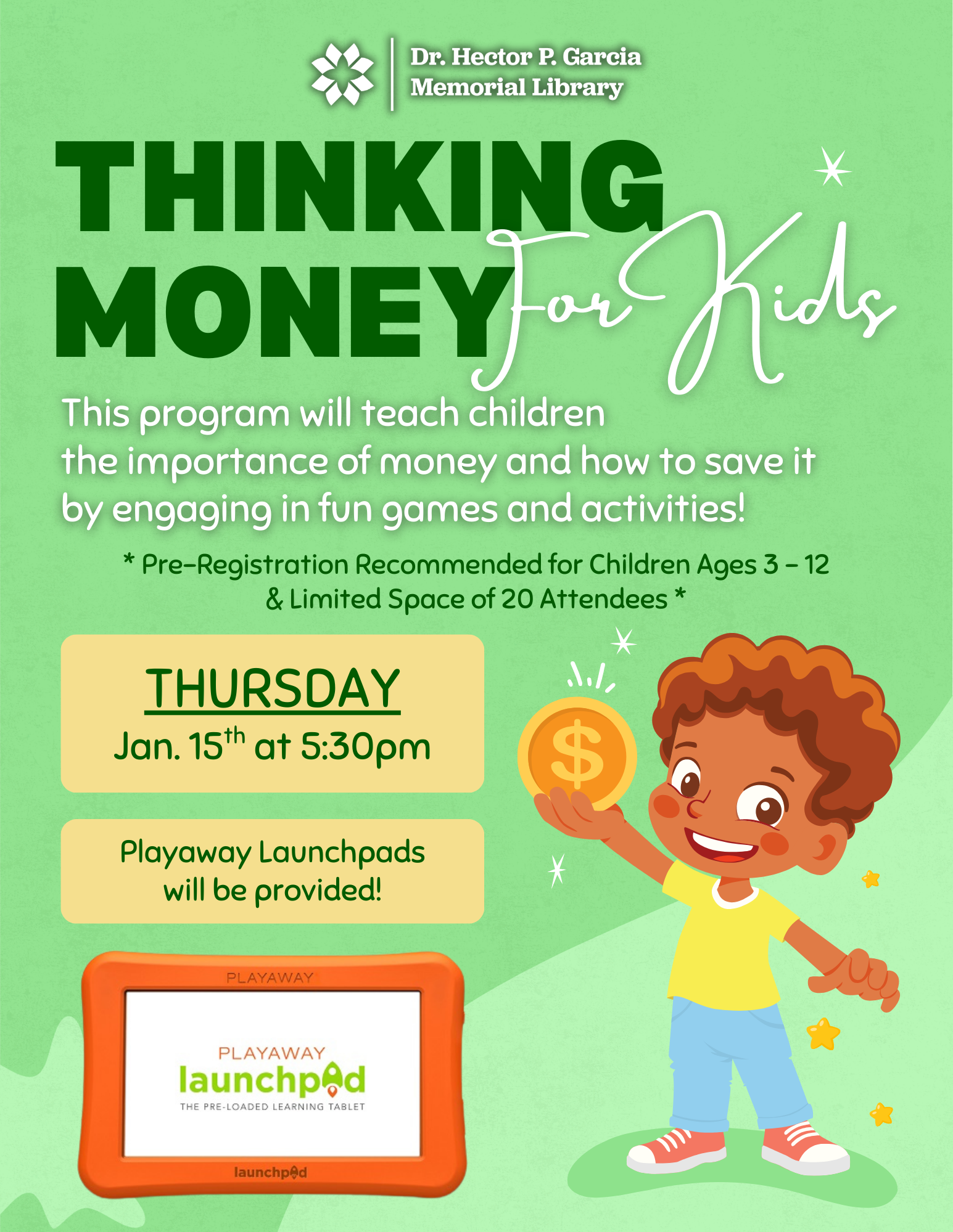 The Dr. Hector P. Garcia Memorial Library has various programs occurring throughout the year for children, teens, and adults. Below you can find a list of our regular programming, but make sure to check on the flyer for specific dates and times.