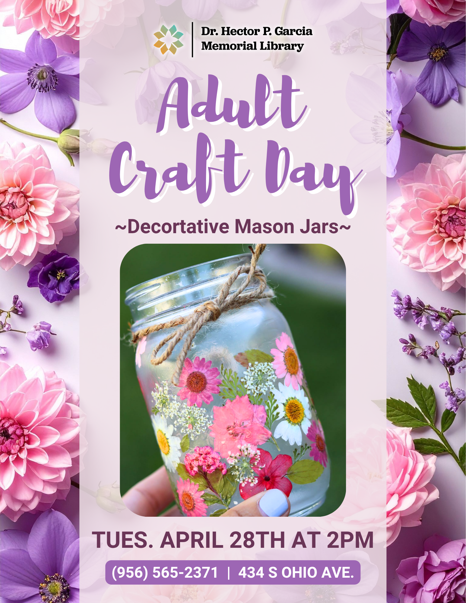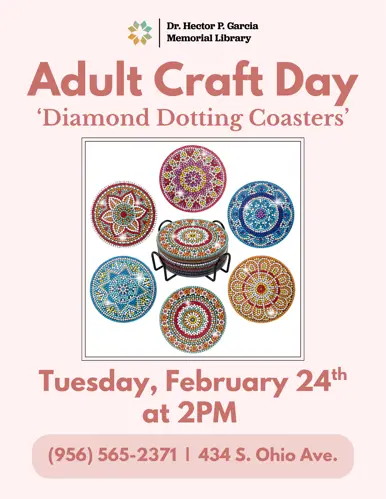 Each month adults can explore their creative side with our fun and easy to follow along crafts. Please check the calendar above for specific activities, dates, and times.