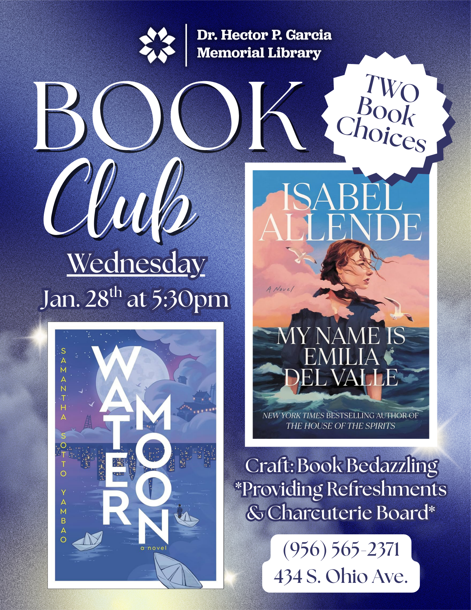 Held every other month. Attendees can look forward to light refreshments and a book themed craft during the program. Adults interested in joining please call the library to request the current book club title.