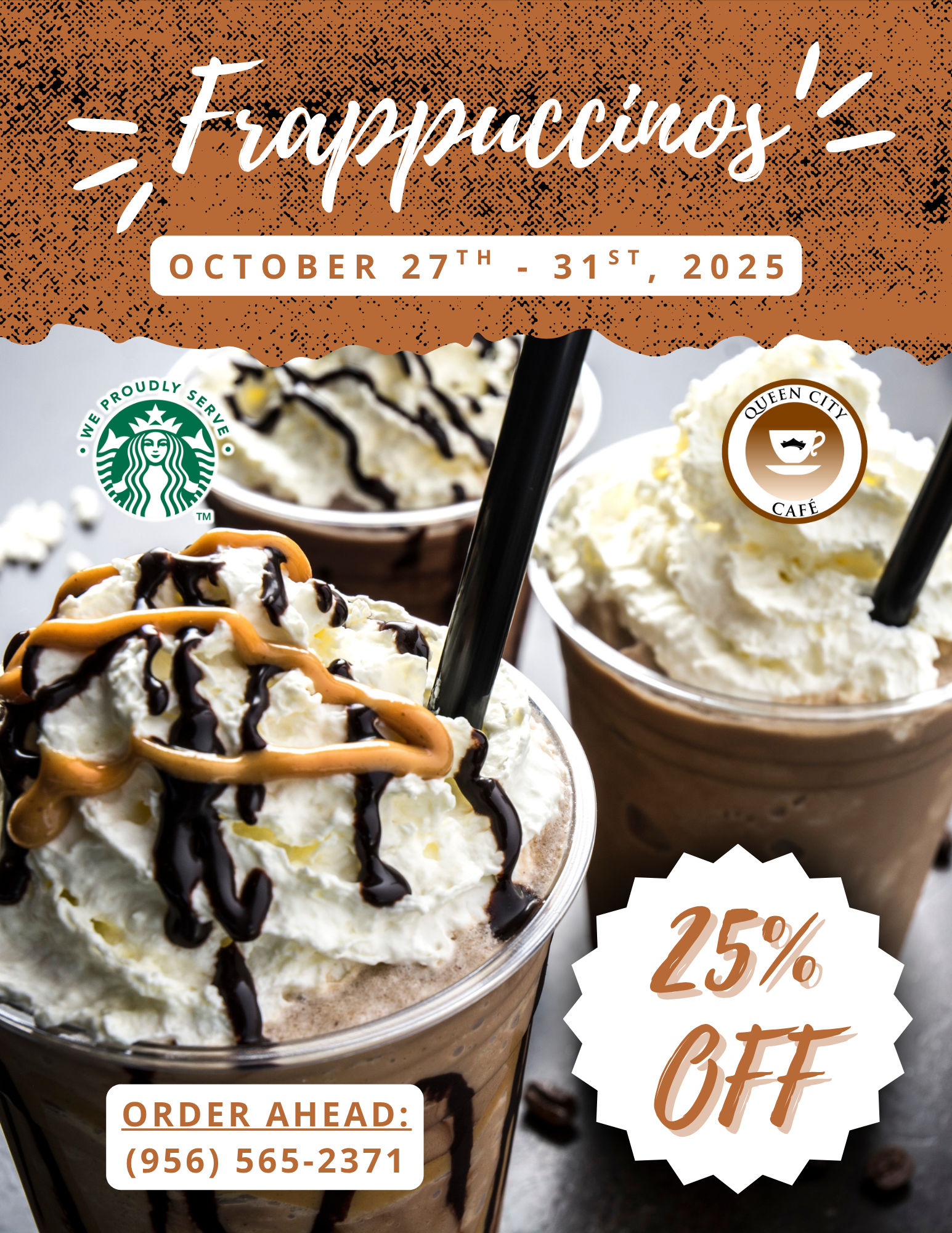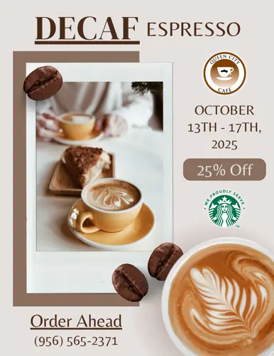 Queen City Cafe is a state of the art café serving delicious snacks and premium coffee drinks. The Café is located inside the Hector P. Garcia Memorial Library at 434 S. Ohio Ave. Mercedes, TX .