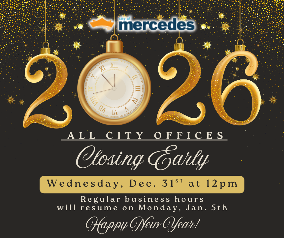 All City Offices will be closing early Wednesday, December 31st at 12 PM.
