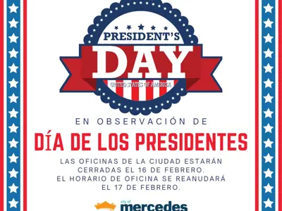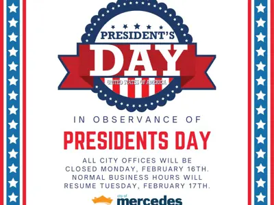 In Honor of Presidents' Day, all city offices will be closed Monday, February 16th, 2026. Normal business hours will resume Tuesday, February 17th, 2026.