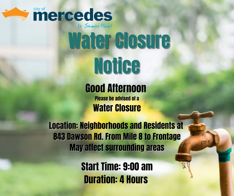 Water will be closed today November 14th 2025 @ 9:00 AM